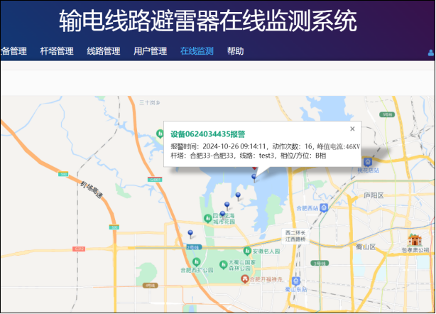 設(shè)計(jì)改進(jìn):每臺(tái)避雷器的安裝地理位置錄入后臺(tái)服務(wù)器后,系統(tǒng)可以很方便利用地理信息管理功能為運(yùn)維檢修人員提供避雷器雷擊地址,雷擊時(shí)間和雷電流幅值數(shù)據(jù),為故障分析和運(yùn)維檢修提供幫助,幫助合理安排設(shè)備的檢修周期,提高設(shè)備的可靠性和穩(wěn)定性。